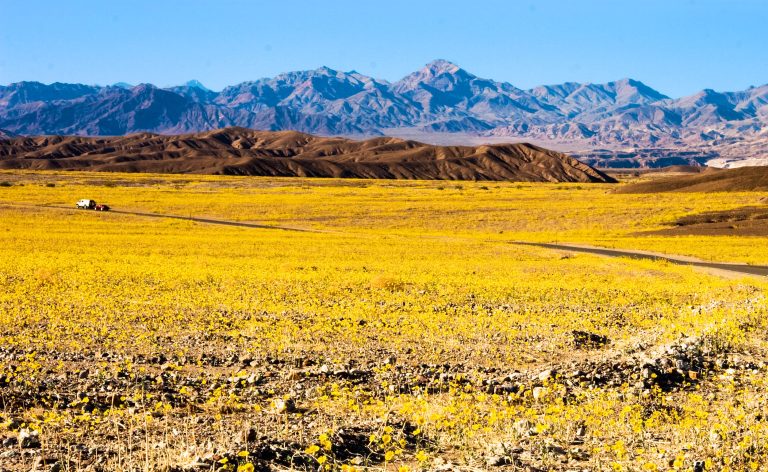 The blooms have been popping up since February, according to the New York Times. Abby Wines, a park ranger at Death Valley National Park told the NYT some flowers bloom every year, but “just not this many.” The most prevalent bloom, the desert gold, has cascaded hillsides around the valley in yellow-ish gold daisy-like flowers.